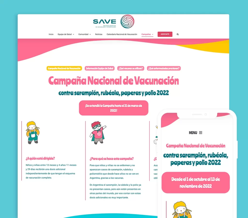 Campaña Nacional de Vacunación Sobre este proyecto Campaña Nacional de Vacunación contra sarampión, rubéola, paperas y polio 2022 para la SAVE (Sociedad Argentina de Vacunología y Epidemiología). Año 2022. Tecnologías: HTML/CSS/Javascript Ver este proyecto