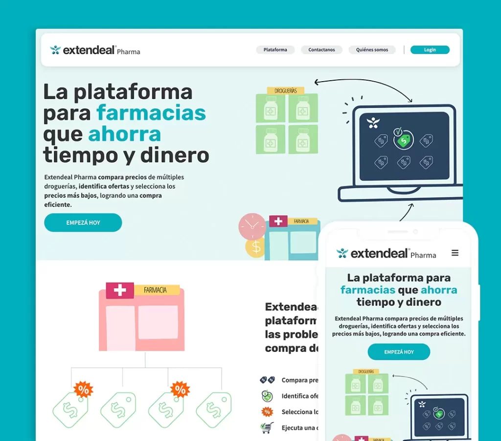 Extendeal Pharma Sobre este proyecto One page para lanzamiento de Extendeal Pharma, una plataforma pensada para resolver las problemáticas diarias de compra de las farmacias. Diseño de interfaz web y desarrollo. Tecnologías: WordPress PHP/CSS/JS Ver este proyecto