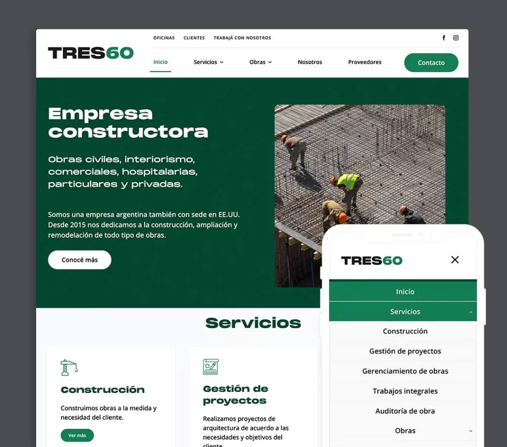 Tres60 Sobre este proyecto Diseño y desarrollo de sitio web en WordPress, con portfolio de obras realizadas con vista detalle para Tres60: Empresa Constructura. Restyling de logotipo. Diseño de manual de marca. Tecnologías: WordPress PHP/CSS/JS Ver este proyecto